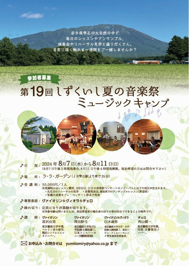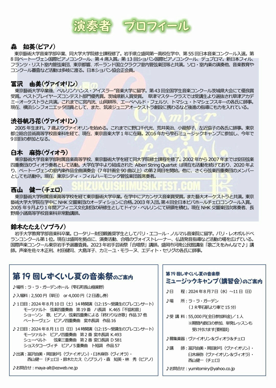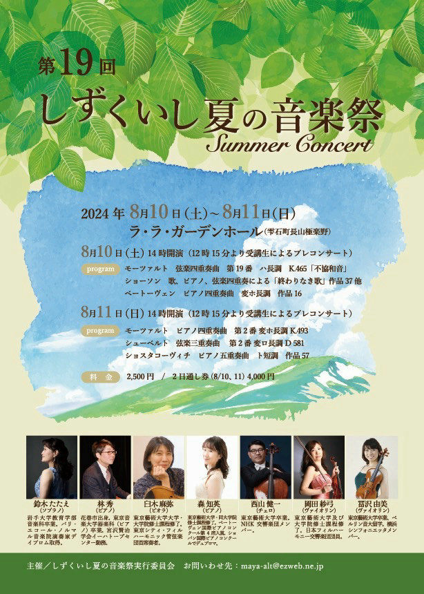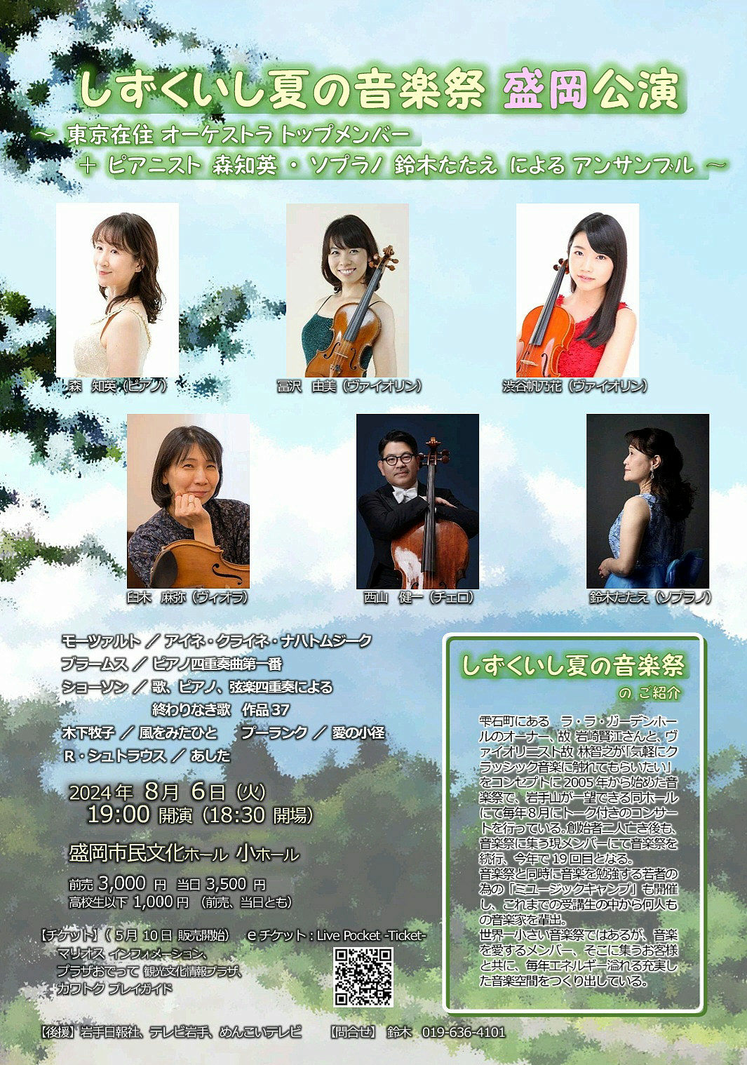 | ●8月5日〜7日 岩手 夏の音楽祭 室内楽コンサート(5・6・7全日) |